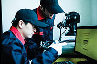 空氣呼吸檢測實(shí)驗室有報警器測試臺,主要用于測試空呼內部壓力。減壓器測試臺,用于測試每一個(gè)出廠(chǎng)的空呼呈否存在漏氣現象。SY-Ⅲ型氣瓶水壓測試裝置,用于測試瓶閥爆破壓力。高低溫測試箱,用于測試溫度范圍。HX-Ⅱ型呼吸器綜合檢測儀,用于測試動(dòng)態(tài)呼吸阻力、靜態(tài)壓力以及供氣閥的開(kāi)啟壓力。充氣室中還配有空氣壓縮機用于對氣瓶充氣以及做氣密性檢測。