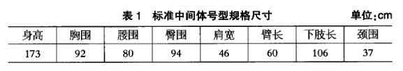 結(jié)合服裝號型標準和GB/13640—1992勞動防護服號型,得到中間體規(guī)格尺寸如表1所示。