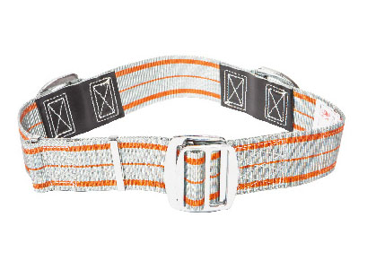 ·消防安全腰帶是一種緊扣于腰部的帶有必要金屬零件的織帶,用于承受人體重量以保護其安全,適用于消防員登梯作蚜口逃生自救。消防安全腰帶帶長連續(xù)可調(diào),由織帶、內(nèi)帶扣、外帶扣、環(huán)扣和兩個拉環(huán)等零部件構(gòu)成。消防安全腰帶的設(shè)計負(fù)荷為1.33N,其質(zhì)量不超過o.85kg??棊橐徽?,無接縫,其寬度為{70±1)mm。具有靜負(fù)荷性能、抗沖擊性能、耐高溫性能以及金屬零件的耐腐蝕性能。