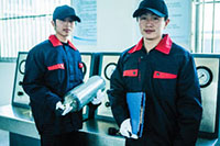 空氣呼吸檢測實(shí)驗室有報警器測試臺,主要用于測試空呼內部壓力。減壓器測試臺,用于測試每一個(gè)出廠(chǎng)的空呼呈否存在漏氣現象。SY-Ⅲ型氣瓶水壓測試裝置,用于測試瓶閥爆破壓力。高低溫測試箱,用于測試溫度范圍。HX-Ⅱ型呼吸器綜合檢測儀,用于測試動(dòng)態(tài)呼吸阻力、靜態(tài)壓力以及供氣閥的開(kāi)啟壓力。充氣室中還配有空氣壓縮機用于對氣瓶充氣以及做氣密性檢測。