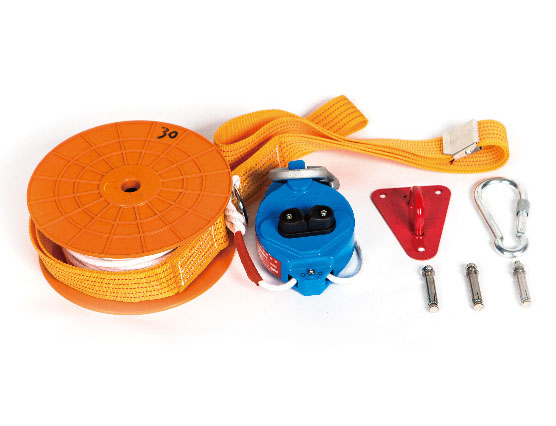·救生緩降器是一種可使人沿(隨)繩(帶)緩慢下降的逃生裝置。一般由掛鉤(或吊環(huán))吊帶、繩索及速度控制器等組成,它可有專用安裝器具安裝在建筑物窗口、陽臺或樓房平頂?shù)忍?,也可安裝在舉高消防車上,營救處于高層建筑物火災(zāi)中的受難人員。
